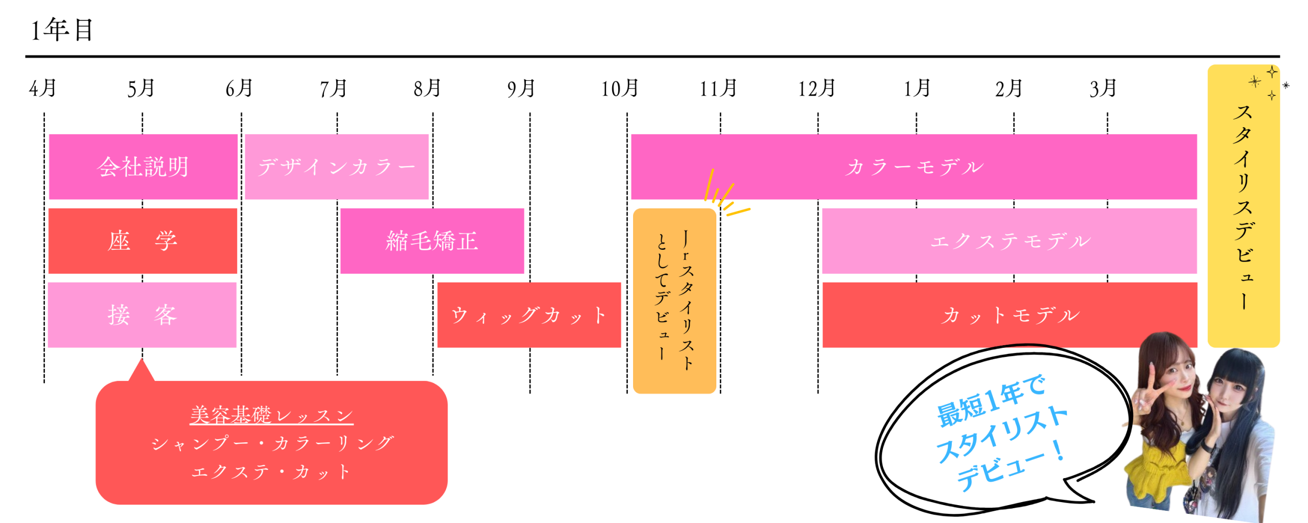 | 対象となる方 | 美容師免許所得者 アシスタント/スタイリストの経験 美容専門学校卒業見込みの方(新卒、中途) |